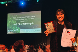 Diah Fitria Widhinigsih, a lecturer from the Department of Agricultural Socio-Economics, Faculty of Agriculture, Universitas Gadjah Mada (UGM), has once again brought international pride to the university. She was honored with the Amabel Fulton APEN Award for Excellence in Extension in the Young Professional (under 35) category at the Australasia-Pacific Extension Network (APEN) International Conference, held on October 14–16, 2025, in Brisbane, Australia.